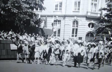 По време на манифестации - срещу хотел България, на разширението на БНБ - на 40 метра от Общината, се опъваше трибуна, там се качваха 4 реда другари, опнати като домати на кол, и махаха на минаващите. Нямам идея защо учителите ни толкова се втеляваха в правите редици и в стройното пеене, като ясно осъзнавахме, или поне осъзнахме След Това, че повечето са били дисиденти.