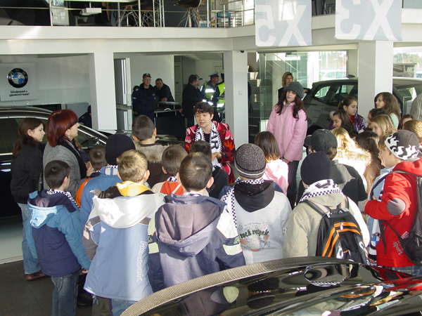 Близо 200 водачи на леки и лекотоварни автомобили, движещи се в двете платна на ул. «Транспортна» в Бургас, се включиха в превантивното полицейско занимание по пътна безопасност, проведено днес с участието на 40 петокласници от училище «Добри Чинтулов». Домакин и партньор в благородната инициатива бе фирма «Бова кар» в лицето на г-н Вартерес Чулуян, официален вносител на «БМВ» и традиционен спомоществувател на превантивните занимания по пътна безопасност.