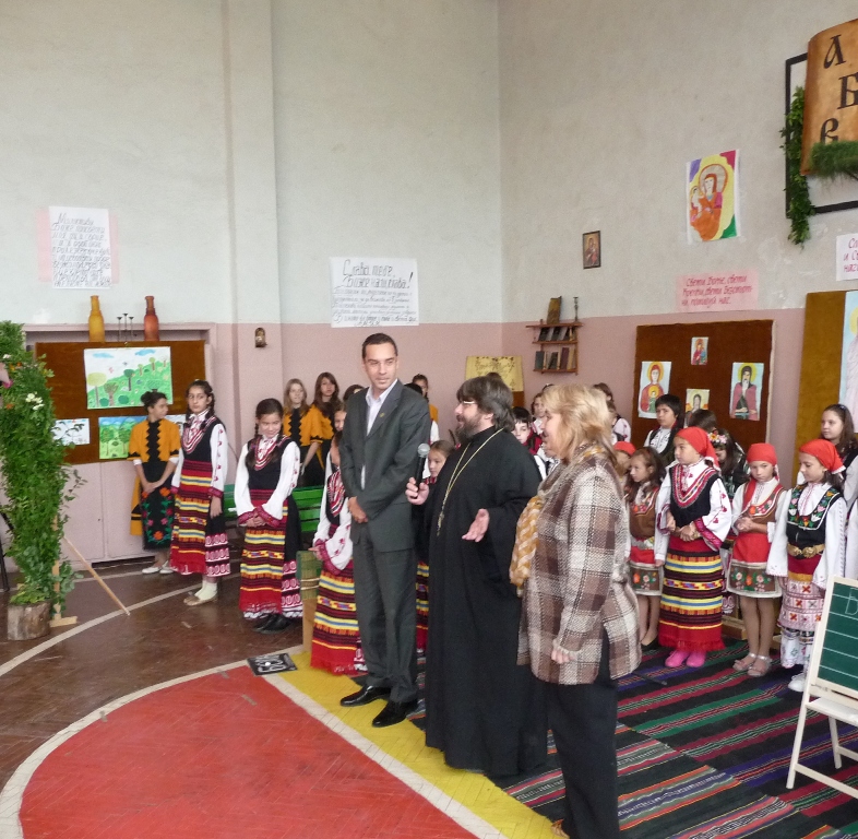 Занятието започна с молитвата „Отче наш”, изрецитирана на черковнославянски от възпитаници на училището. Присъстващите буквално се пренесоха в класната стая на Вазовата героиня Рада Госпожина - заради възрожденските одежди и прически на учителките, народните носии на децата, тъканите черги, сандъчетата с пясък за писане, мастилниците и перата, старовремския глобус в ъгъла, но най-вече поради факта, че учениците слушаха учителите и не държаха в ръцете си мобилни телефони : )