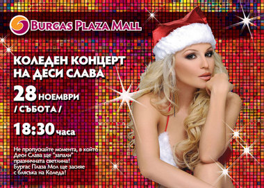 Звездният Коледен сезон в Бургас Плаза Мол започва на 28 ноември (събота), когато поп-фолк дивата Деси Слава ще запали светлините на 8-метровата Коледна елха. Чаровната певица ще постави началото на многобройните Коледни изненади, подготвени от търговския център като поздрави всички посетители с едночасов концерт, започващ в 18.30 часа.