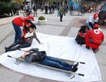 В демонстрацията се включиха експерти от Областен съвет на БЧК и бургаската пожарна, които показаха как се оказва първа помощ на пострадали.