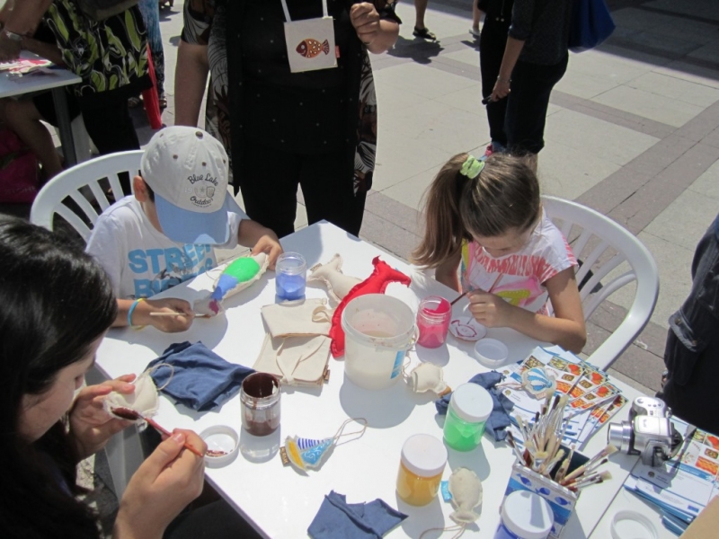 Рисуването на рибата беше съпътствано и от други творчески занимания на морска тематика. Талантливият екип на общинското социално предприятие „Морски знаци“ демонстрира своите умения за изработка на сувенири с визия на риби, корали, морски звезди, др. На място всеки, който желаеше, можеше да се включи в работилница за изработка на оригами на подводни обитатели. На картонена лодка бургазлии оставяха цветни отпечатъци от дланта си, давайки по този начин своето символично „за“ кандидатурата на Бургас за културна столица през 2019 г.