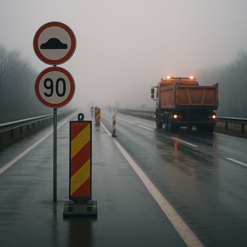 В района на км 346+400 – 349+000 скоростта е ограничена на 90 км/ч заради частични ремонти на настилката.